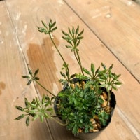白花一重梅花型の花を早春に咲かせる。平鉢、盆栽添草